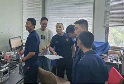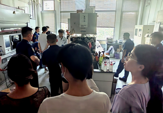 各位消防员同志走进实验室,仔细询问和排查实验室的各项安全情况,曹岩磊指导员首先就消防安全的基本知识做了简要讲解,他强调火灾猛烈阶段,迅速蔓延的火石、巨大的燃烧面积和极高的温度,将会使火势达到难以控制的程度,因此一旦发现火情,就要及时采取措施并且迅速报警。曹岩磊同志多次强调,面对火灾我们应当树立正确的意识,以生命安全为第一位,不要因小失大,为了钱财等身外之物而错失逃离火灾现场的最佳时机。纪检委员刘雨昕向消防站同志介绍自己实验室的工作并让消防站的同志们体验红外仪,消防同志仅需将手指放在仪器上,电脑屏幕便会显示元素组成。于北溟书记带领消防站的同志们参观了工业生态楼的党员之家,向消防员同志们介绍了动漫屋 特色的党建活动以及各种实验室安全检查活动。