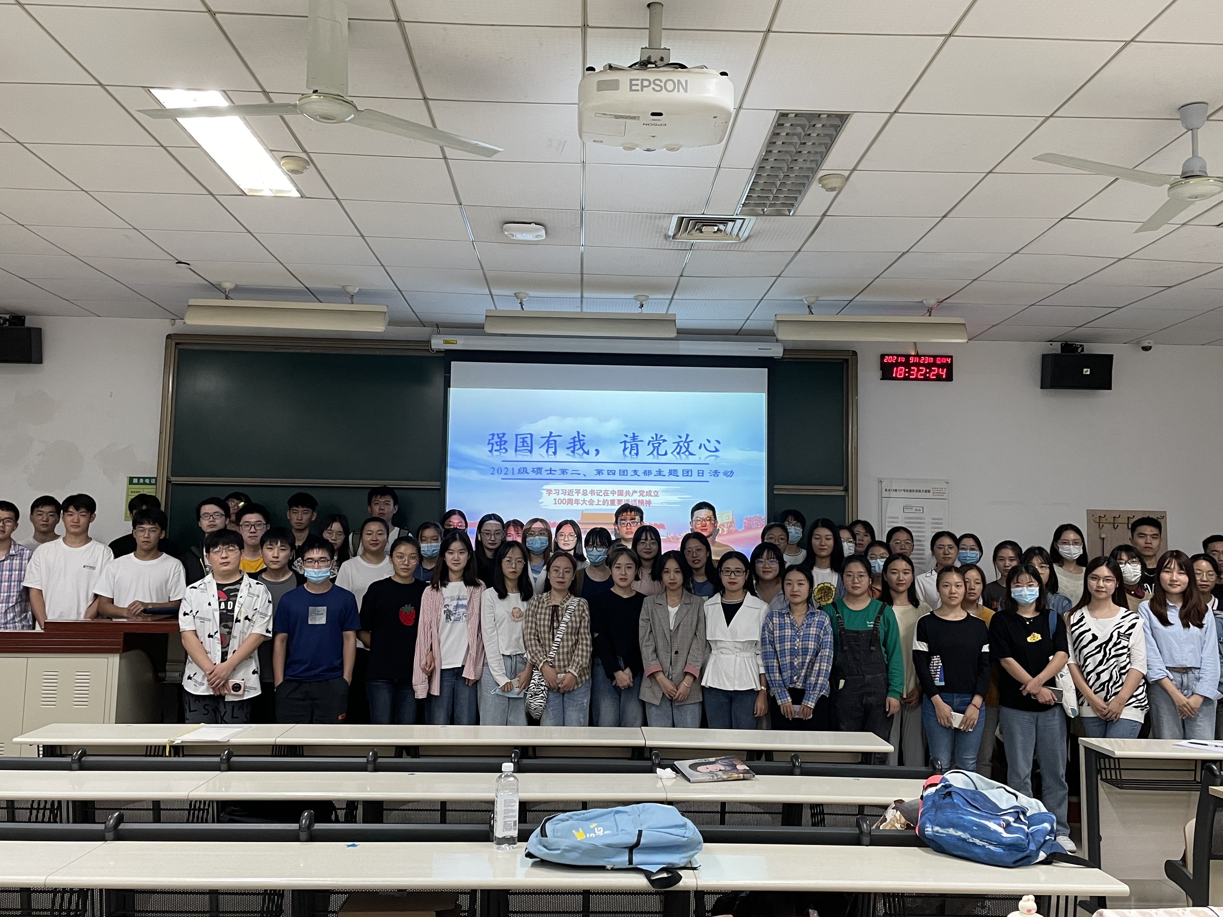 恰逢中国共产党成立百年,作为社会主义的接班人,青年肩负着前人的期许,肩负中华民族伟大复兴的重任。在习近平总书记庆祝中国共产党成立一百周年的讲话精神的指引下,9月23日晚18:00,2021级硕士第二、第四团支部于理科教学楼107教室联合召开“强国有我,请党放心”主题团日活动,本次活动由团支书王琛和宋哲轩共同主持。
