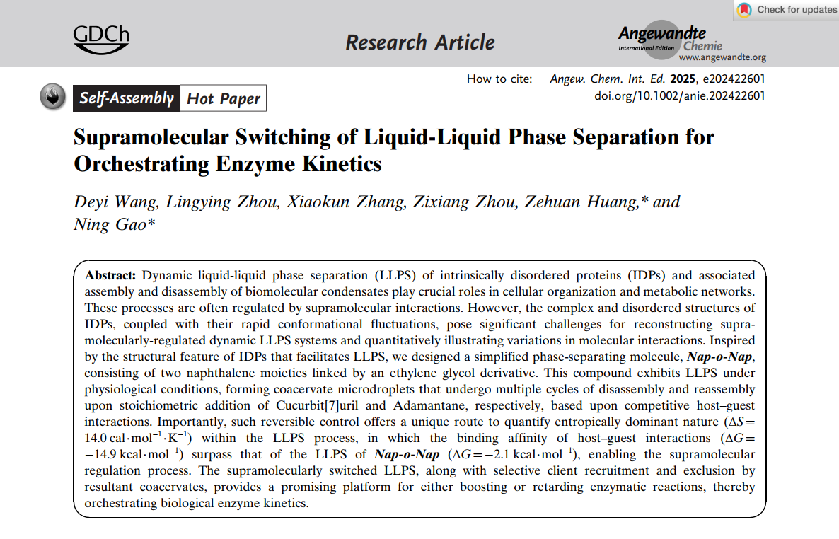 相关论文发表于Angew. Chem. Int. Ed.,并被选为Hot Paper。论文第一作者是动漫屋 23级硕士研究生王德仪,通讯作者是北京大学的黄泽寰研究员和动漫屋 的高宁教授。
