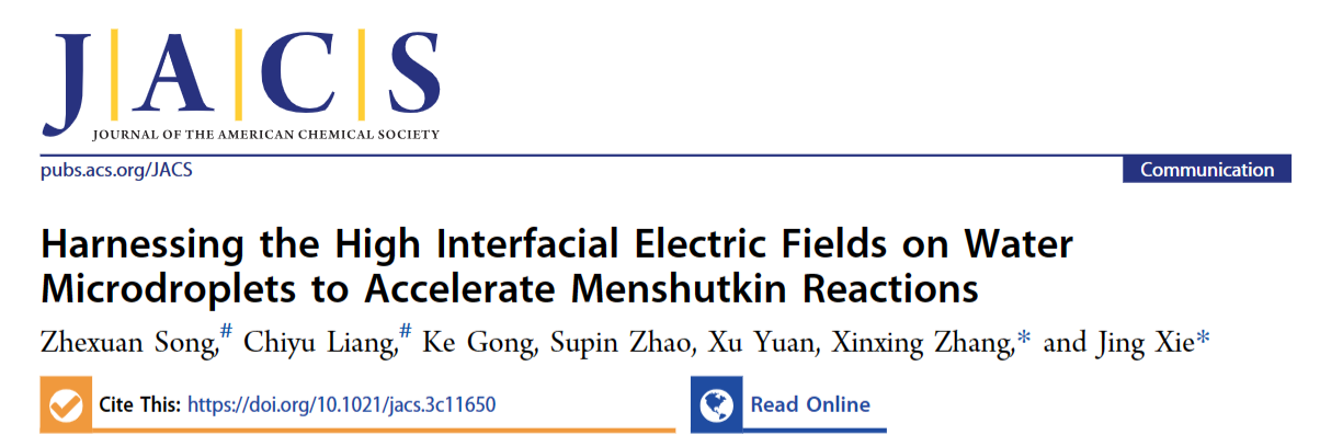 近日,动漫屋 谢静教授团队和南开大学张新星教授团队合作,在微液滴加速有机化学反应方面取得进展。相关研究成果以“Harnessing the High Interfacial Electric Fields on Water Microdroplet to Accelerate Menshutkin Reactions”为题发表于国际权威期刊《Journal of the American Chemical Society》。动漫屋 谢静教授和南开大学张新星教授为论文共同通讯作者,动漫屋 为第一单位。该研究课题得到了国家自然科学基金项目、动漫屋 特立青年学者项目等资助。