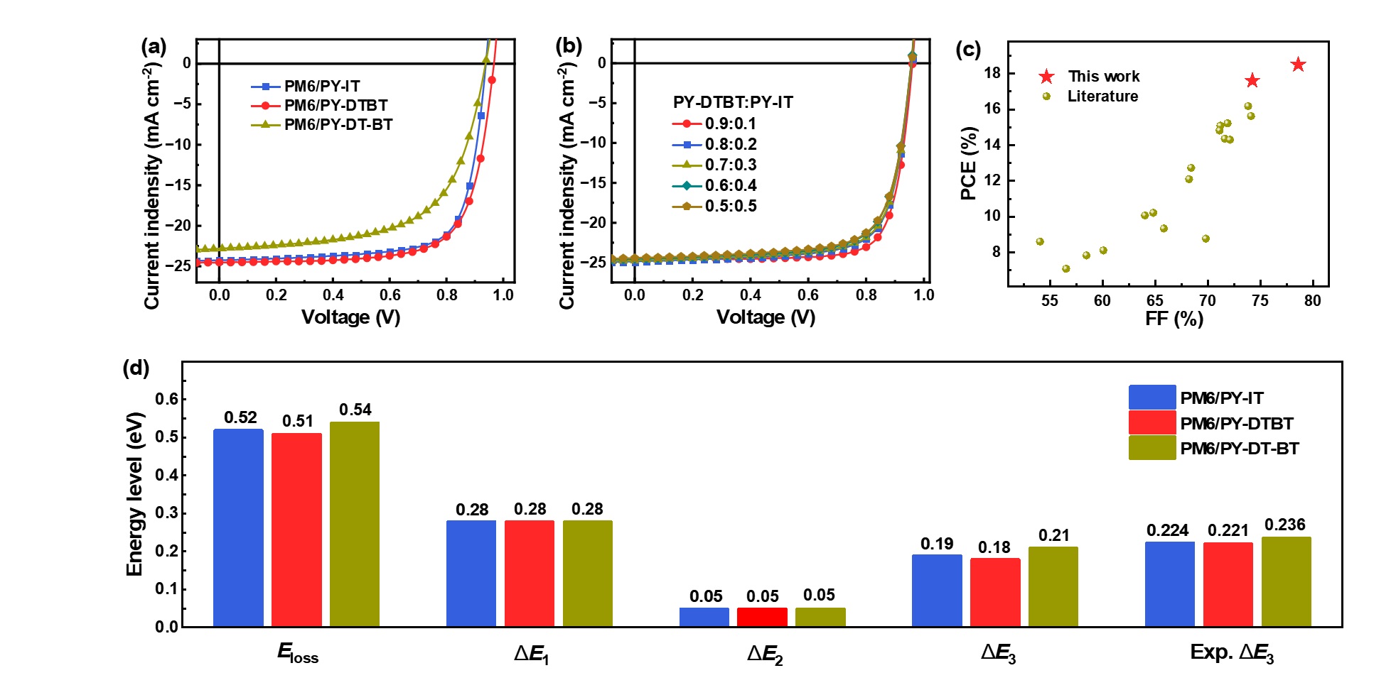 图3. 全聚合物有机太阳能电池的性能与能量损失图