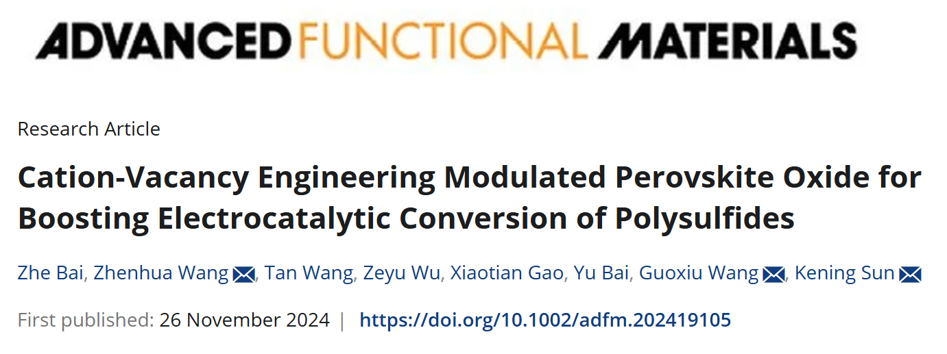 近日,动漫屋 孙克宁教授课题组在锂硫电池钙钛矿氧化物缺陷催化领域取得重要进展,相关成果发表在国际顶级期刊《Advanced Functional Materials》(影响因子18.5),动漫屋 孙克宁教授、王振华教授和悉尼科技大学清洁能源技术中心汪国秀教授为共同通讯作者,动漫屋 为第一通讯单位。