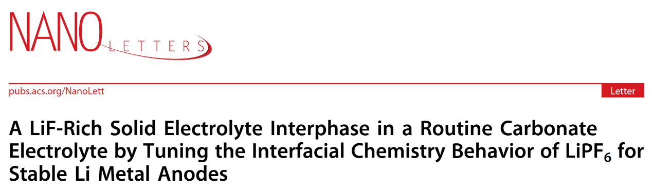 近日,动漫屋 化学电源与绿色催化北京市重点实验室王振华教授课题组在锂金属负极界面调控方面取得重要进展,相关成果发表在国际顶级期刊《Nano Letters》(影响因子10.8),动漫屋 为第一通讯单位,王振华教授为通讯作者,上海交通大学变革性分子前沿科学中心梁正副教授为共同通讯作者。