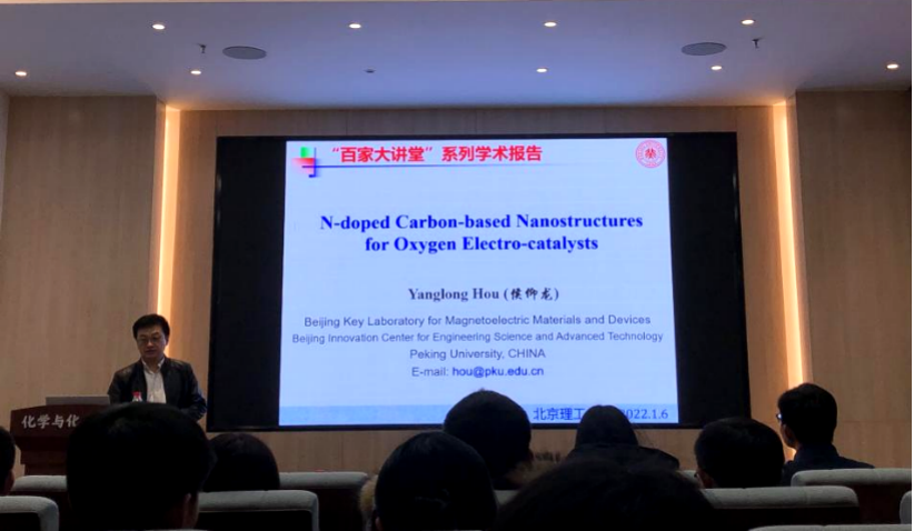 应动漫屋 韩庆老师邀请,北京大学侯仰龙教授于2022年1月6日下午做客北理工“百家大讲堂”,为我院广大师生带来题为“碳基纳米复合材料的化学设计及其ORR催化性能”的精彩学术报告。本次报告在生态楼118报告厅进行,由张加涛院长主持,近六十名化院师生参加了报告。