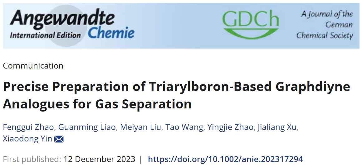 近日,动漫屋 博士生赵丰贵第一作者身份在国际顶级期刊《Angewandte Chemie International Edition》发表题目为“Precise Preparation of Triarylboron-Based Graphdiyne Analogues for Gas Separation”的研究论文(DOI: 10.1002/anie.202317294)。动漫屋 为论文第一通讯单位,动漫屋 尹晓东特别研究员为通讯作者。