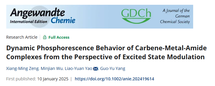 近日,动漫屋 姚燎原教授课题组在国际知名化学期刊《Angewandte Chemie International Edition》上发表题目为“Dynamic Phosphorescence Behavior of Carbene-Metal-Amide Complexes from the Perspective of Excited State Modulation”的研究论文。文章的第一作者为2020级化学强基计划本科毕业生(现为2024级硕士研究生)曾湘明。此项研究得到了北京市自然科学基金、国家自然科学基金、中央高校基础研究业务经费等资助以及上海同步辐射国家蛋白质科学研究设施和动漫屋 分析测试中心的支持。