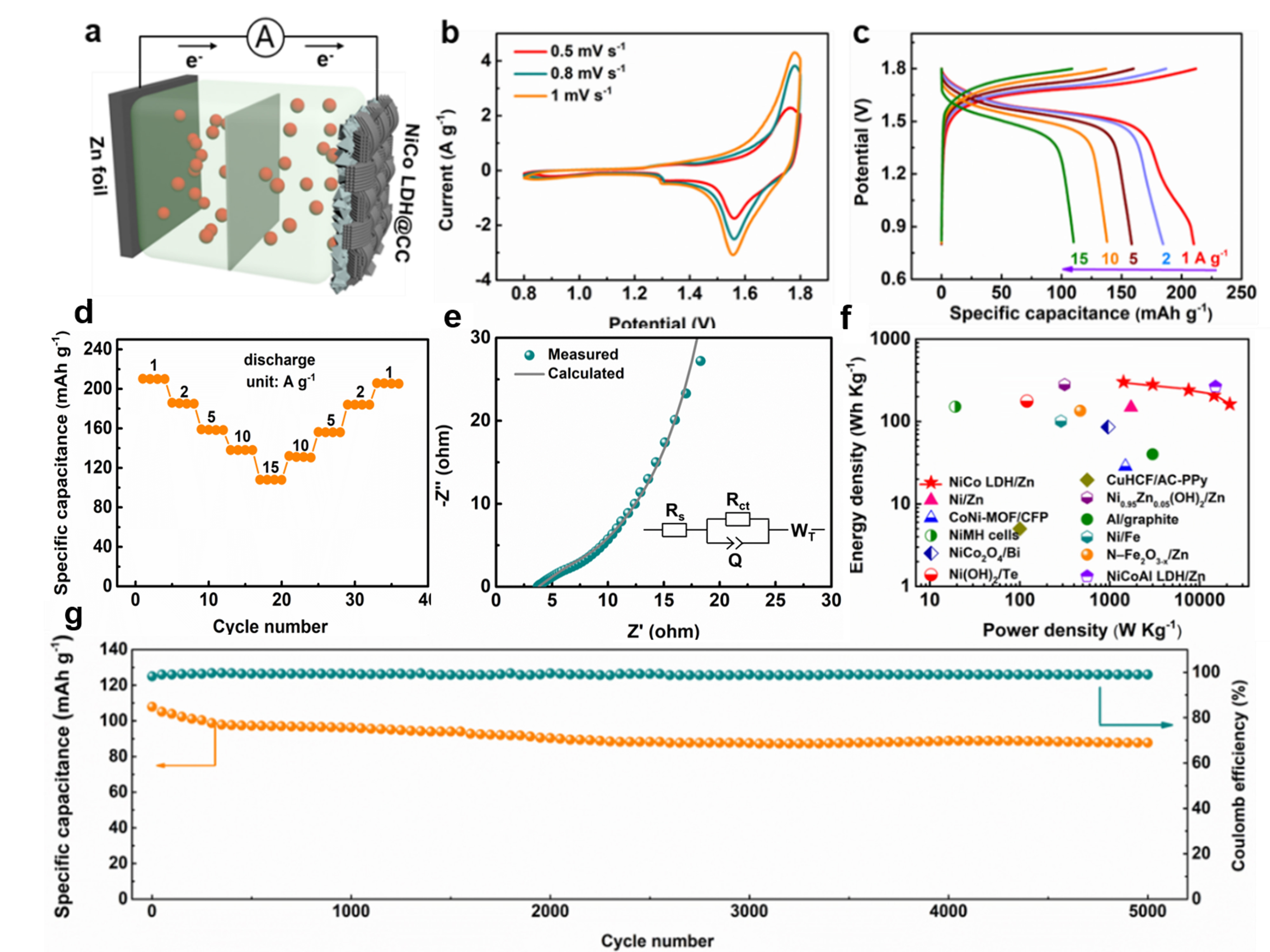 图5. 基于NiCo-LDH@CC正极锌离子电池的电化学性能