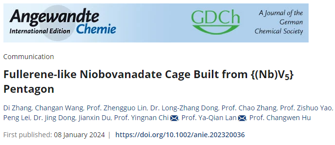 近期,动漫屋 胡长文教授和迟瑛楠教授团队在基于{Nb(V5)}五角星的类富勒烯铌钒笼簇构筑方面取得重要进展。相关成果以“Fullerene-like Niobovanadete Cage Built from{Nb(V5)} Pentagon”为题,发表在化学领域国际顶级期刊《Angewandte Chemie International Edition》(2024, e202320036)上。动漫屋 迟瑛楠教授和华南师范大学兰亚乾教授为共同通讯作者,动漫屋 为第一通讯单位,动漫屋 博士研究生张迪为该论文的第一作者。