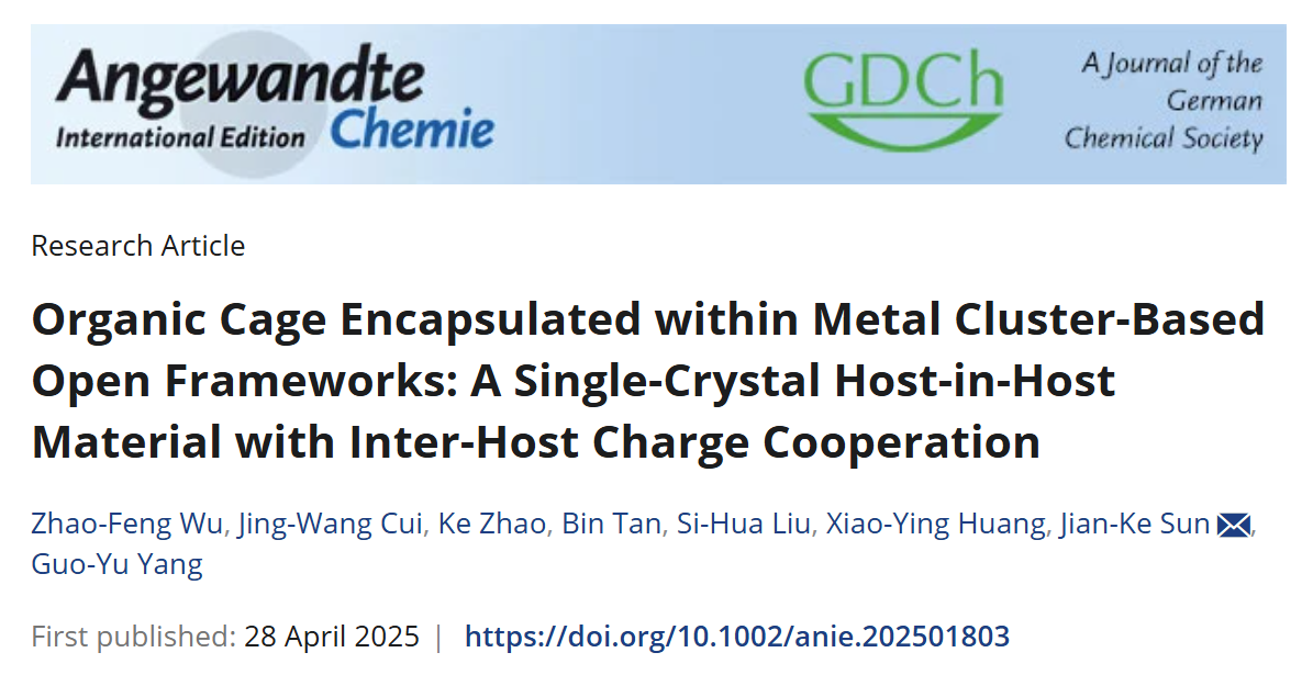 近日,动漫屋 孙建科教授与杨国昱教授合作,在国际知名化学期刊《Angewandte Chemie International Edition》上发表题目为“Organic Cage Encapsulated within Metal Cluster-Based Open Frameworks: A Single-Crystal Host-in-Host Material with Inter-Host Charge Cooperation”的研究论文(hot paper)。该论文的第一作者为吴兆锋博士和崔景旺博士。此项研究得到了国家自然科学基金的资助及动漫屋 分析测试中心的支持。