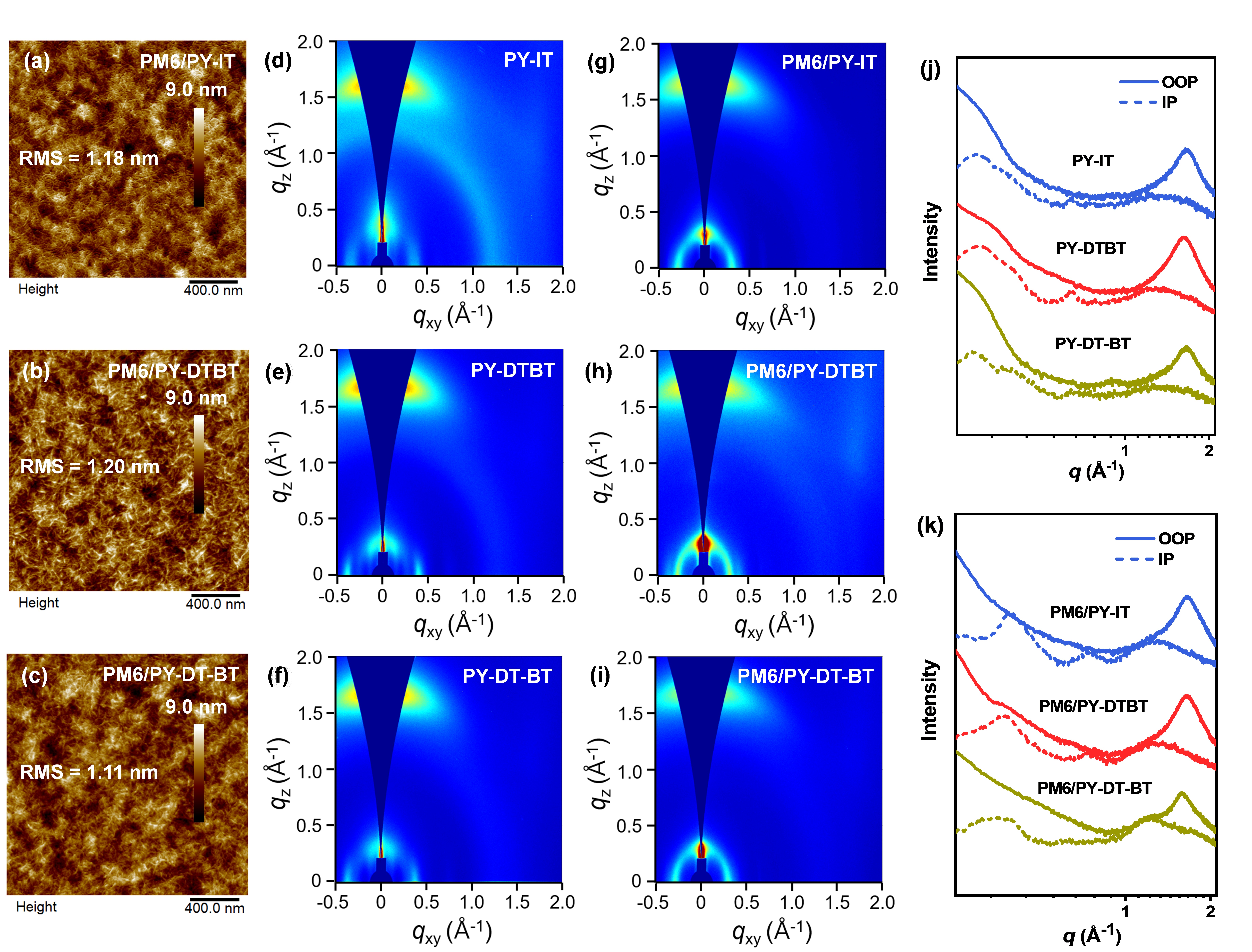 图2. PM6/聚合物受体共混薄膜的形貌图