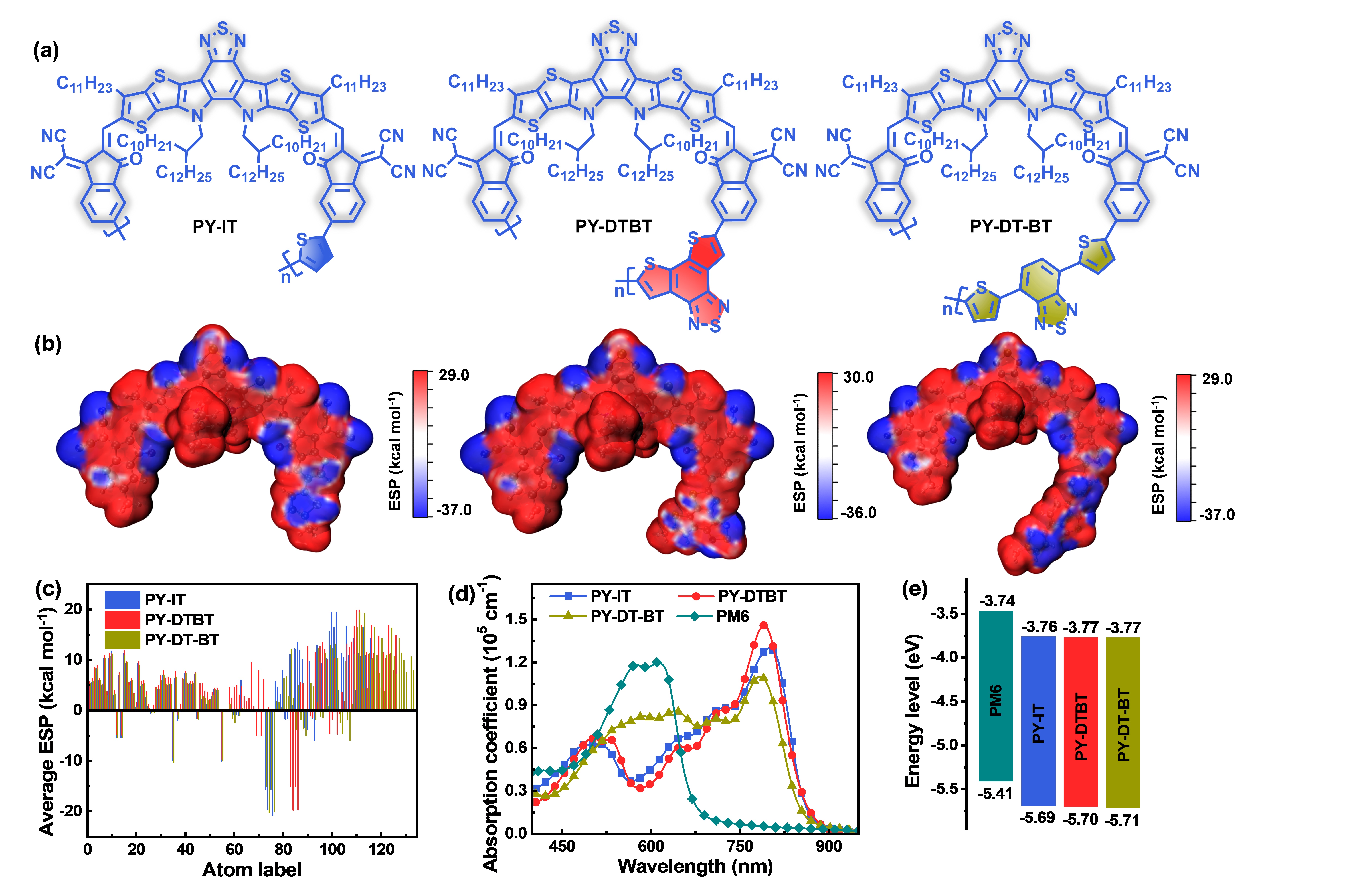 图1. 聚合物受体的分子结构和本征光电性质图