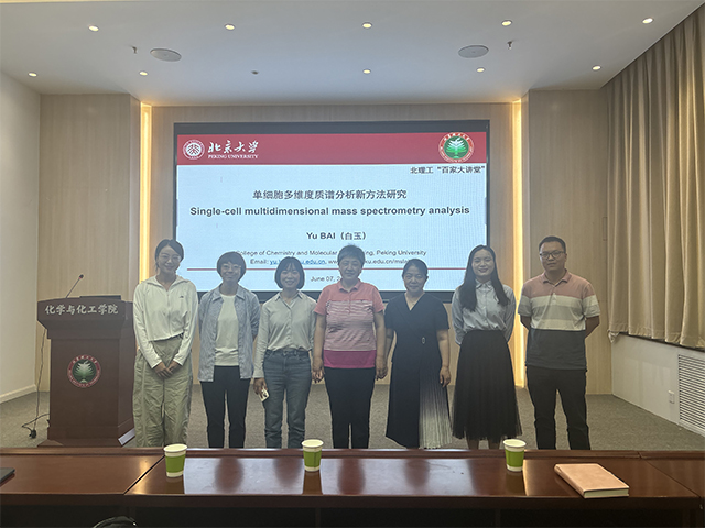 2024年6月7日上午,应动漫屋 邀请,北京大学白玉教授于工业生态楼118报告厅做题为“单细胞多维度质谱分析新方法研究”的学术报告,本次学术报告由王蔚芝老师主持,三十余名化院师生参加。