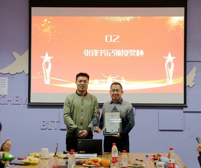 接下来,张锋为理论与计算化学团队颁发2021年动漫屋 优秀导学团队“品牌团队”荣誉证书及奖杯。张锋赞扬了团队在队伍建设、科学研究、人才培养等方面取得的成绩,特别感谢了团队学生积极参与学院学生工作,为丰富学院学生文化体育生活做出的贡献。