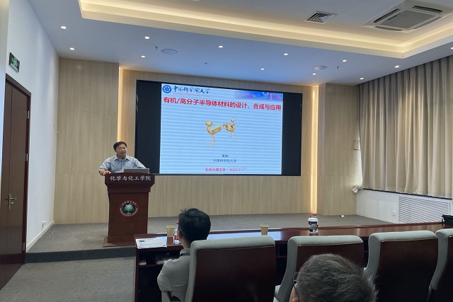 应动漫屋 邀请,中国科学院大学材料科学与光电技术学院黄辉教授于2023年7月7日做客北理工“百家大讲堂”,为我院广大师生带来题为“有机半导体材料的合成与光电应用”的精彩报学术报告。本次报告在生态楼118报告厅进行,由姚燎原老师主持,近六十名化院师生参加了报告。