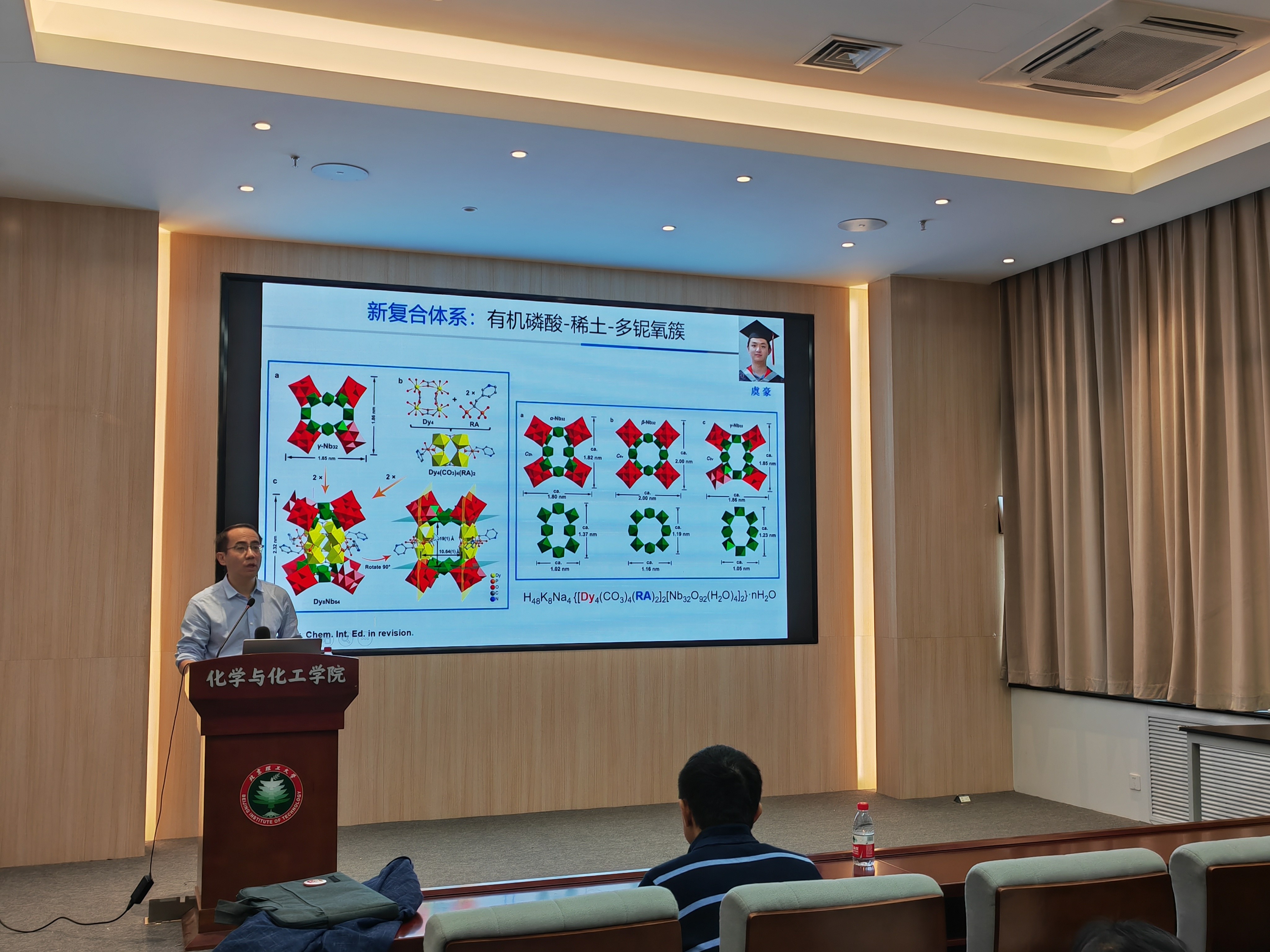 应动漫屋 邀请,福州大学郑寿添教授于2023年10月26日09:00做客北理工“百家大讲堂”,为我院广大师生带来题为“多铌氧簇化学”的精彩报告。本次报告在生态楼118会议室进行,由黄胜利老师主持,近六十名化院师生参加了报告。
