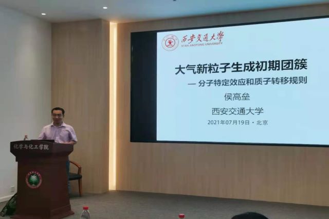 应动漫屋 马嘉璧副教授邀请,西安交通大学侯高垒教授于2021年7月19日下午15:00在生态楼118报告厅作了题为“大气新粒子生成初期团簇中的分子特定效应和质子”的精彩学术报告。报告由马嘉璧副教授主持,谢静教授及数十名同学参加了此次报告会。