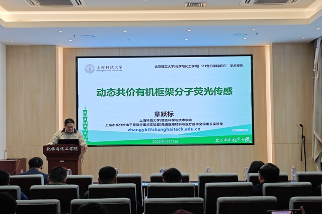应动漫屋 邀请,上海科技大学章跃标研究员于2025年4月10日上午莅临北理工“21世纪学科前沿”系列论坛,为我院广大师生带来题为“动态共价有机框架分子荧光传感”的精彩学术报告。本次报告在生态楼118报告厅进行,由陶军老师主持,吸引了众多师生和科研工作者的积极参与。