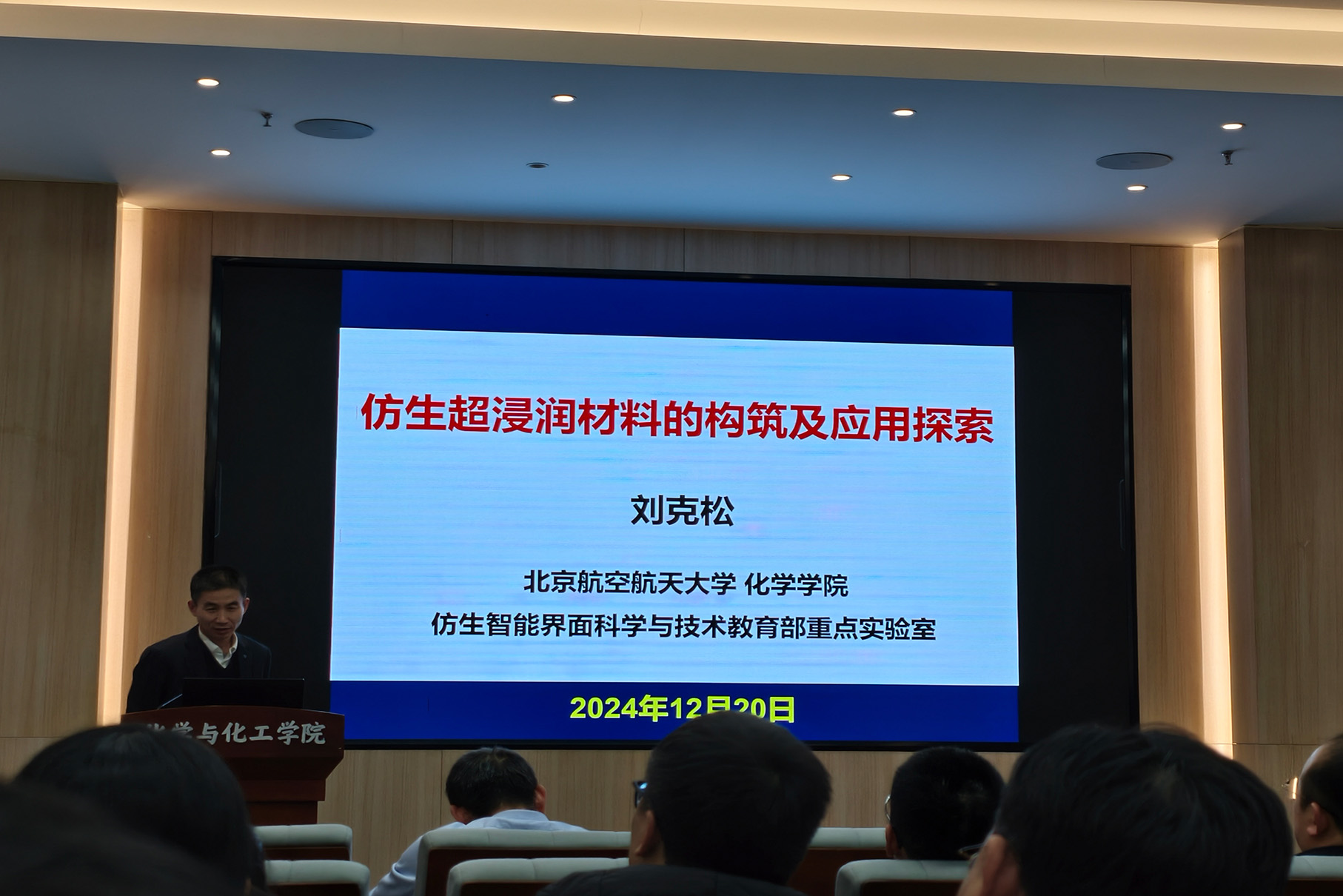 应动漫屋 邀请,北京航空航天大学刘克松教授于2024年12月20日做客北理工“百家大讲堂”系列论坛,为我院广大师生带来题为“仿生超浸润材料的构筑及应用探索”的精彩学术报告。本次报告在生态楼118报告厅进行,由杨国昱老师主持,近六十名化院师生参加了报告。