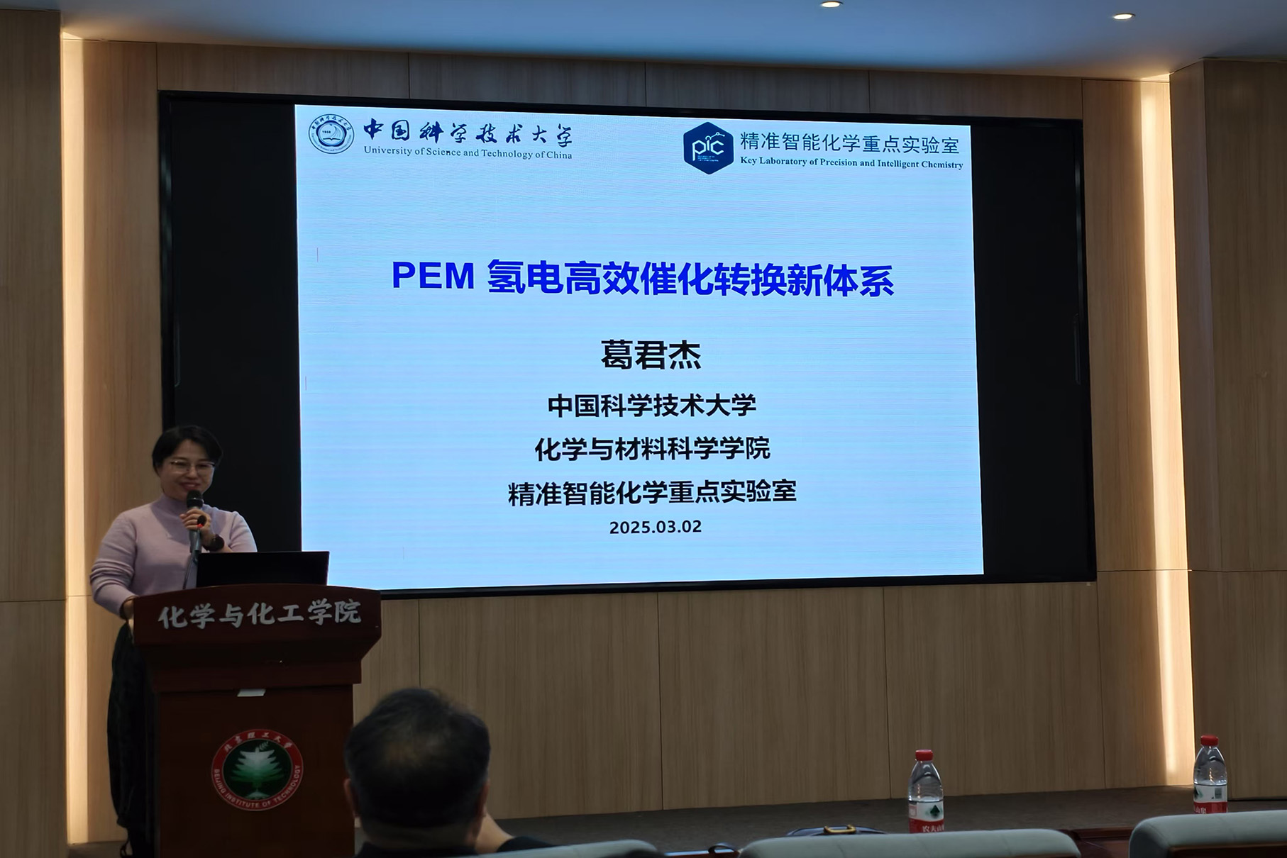 应动漫屋 邀请,中国科技大学葛君杰教授于2025年3月4日14:00做客北理工“21世纪学科前沿”系列论坛,为我院广大师生带来题为“PEM氢电高效催化转换新体系”的精彩学术报告。本次报告在生态楼118报告厅进行,由杨国昱老师主持,近五十名化院师生参加了报告。
