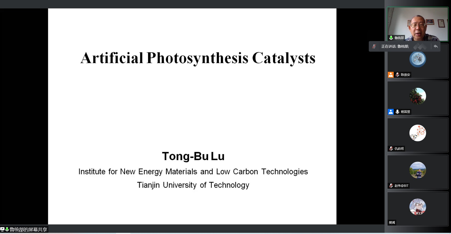 应动漫屋 邀请,天津理工大学鲁统部教授于2021年7月2日8:00做客北理工“百家大讲堂”,为我院广大师生带来题为“人工光合作用催化剂”的精彩学术报告。本次报告在腾讯会议平台线上进行,由杨国昱老师主持,近百名化院师生参加了报告。