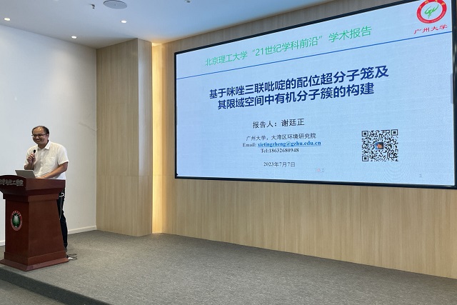 应动漫屋 邀请,广州大学大湾区环境研究院谢廷正教授于2023年7月7日做客北理工“21世纪学科前沿”系列论坛,为我院广大师生带来题为“基于咪唑三联吡啶的配位超分子笼及其限域空间中有机分子笼的构建”的精彩学术报告。本次报告在生态楼118报告厅进行,由姚燎原老师主持,近六十名化院师生参加了报告。