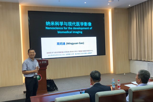 应动漫屋 张韫宏课题组邀请,苏州大学高明远教授于2021年9月26日下午来访良乡校区,并作题为《纳米科学与现代医学影像》的学术报告。来自特立书院、求是书院、动漫屋 以及医学技术学院的共50余名师生参加此次报告会。报告由动漫屋 院长张加涛教授主持。