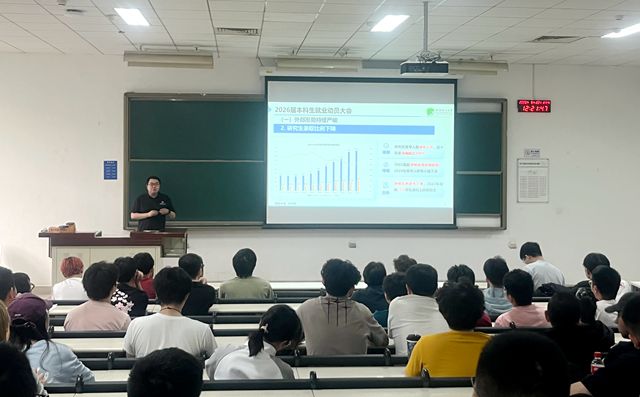 支俊格强调本次会议是提前布局,早做准备,帮助同学们明确发展方向,做好学业规划,圆满完成大学学业。会议围绕就业形势、保研政策、考研准备等学生关切的问题展开。负责学生就业的李囝老师介绍了当前就业形势、求职技巧,提醒同学们关注行业动态,提前做好职业规划。负责本科教学的王星星老师介绍了往年学校的保研政策、毕业学分要求,提醒同学们熟悉培养方案,提前了解科研导师研究方向,为如期毕业做好准备。负责研究生招生的董博洋老师针对工程硕博项目、考研报名流程及备考策略进行了讲解,提醒同学们注意时间节点,合理选择目标学科。