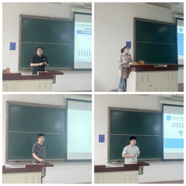 随后化学专业赵炫烨和能源化学工程专业李阳两位学长结合自身备考经历,分享了公共课和专业课复习方法,针对院校选择、备考时间安排策略等方面提供了实用建议,并推荐了相关备考资料。