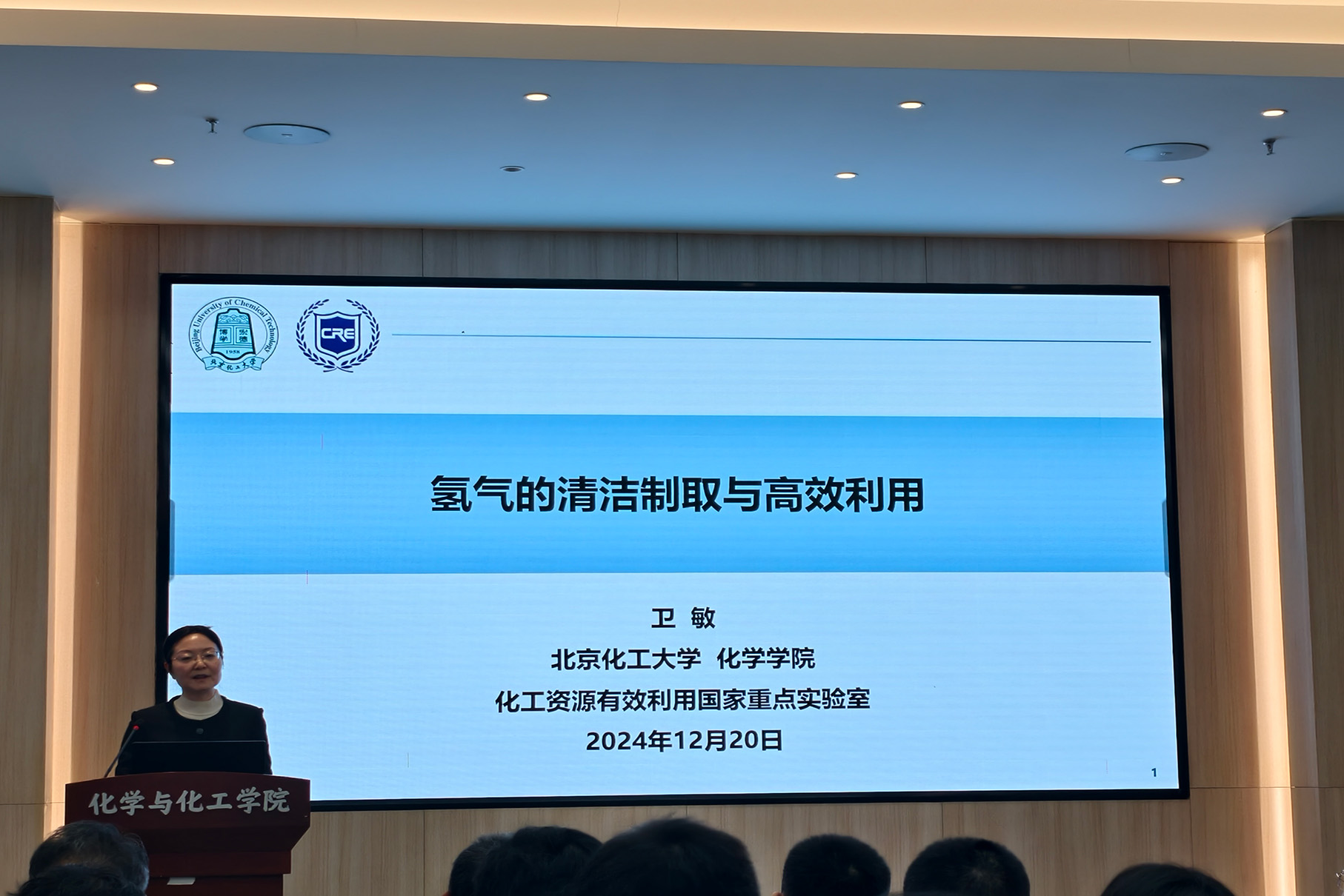 氢气作为绿色可持续的二次能源,在推动我国经济社会发展及能源结构绿色低碳转型过程中发挥着关键作用。卫敏教授及其团队对生物基低碳醇重整制氢、氢气纯化及精制技术,以及催化加氢反应体系进行了系统研究应动漫屋 邀请,北京化工大学卫敏教授于2024年12月20日做客北理工“百家大讲堂”系列论坛,为我院广大师生带来题为“氢气的清洁制取及高效利用”的精彩学术报告。本次报告在生态楼118报告厅进行,由杨国昱老师主持,近六十名化院师生参加了报告。。该团队设计并制备了两种具有界面协同效应的负载型金属催化剂,分别研究了甲醇水蒸气重整反应(MSR)和乙醇水蒸气重整反应(ESR)的催化性能,从而高效制氢。随后采用水煤气变换反应(WGSR)将生成的氢气纯化,使得一氧化碳(CO)浓度降至1%。并进一步通过CO优先氧化反应(CO-PROX),进一步精制氢气,将CO浓度降至10ppm以下,从而获得高纯度氢气。基于此,该团队还探讨了生物质平台分子的加氢/加氢脱氧催化转化反应,成功获得了高附加值的精细化学品和生物燃料。该团队建立了一个氢气清洁制取,安全储存,高效利用所需反应和循环单元的集成系统,推动了清洁能源产业绿色高效发展。