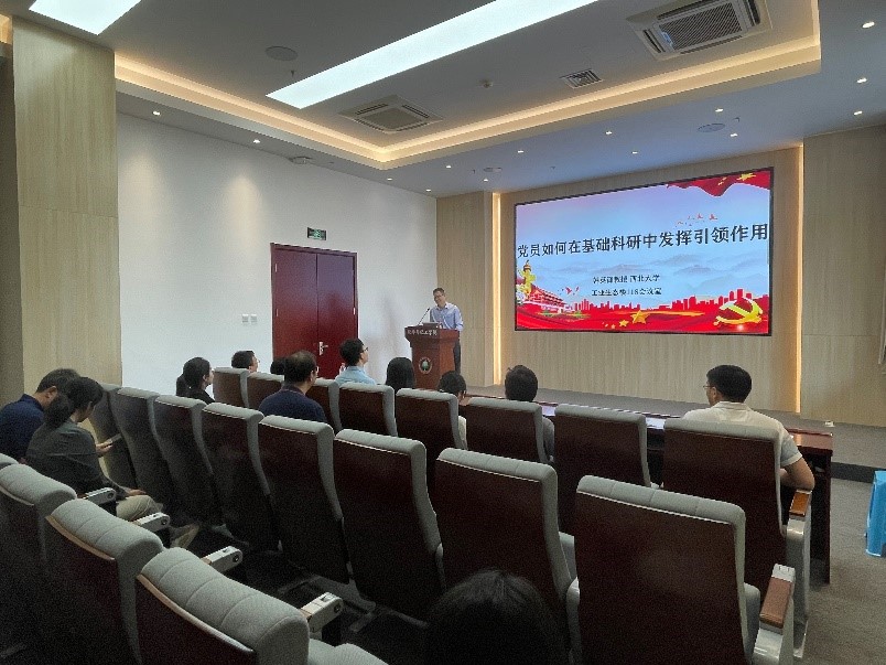 2023年5月18日中午,西北大学化学与材料科学学院韩英锋教授在动漫屋 工业生态楼118会议室为无机支部老师讲授了一堂生动的党课:党员如何在基础科研中发挥引领作用。