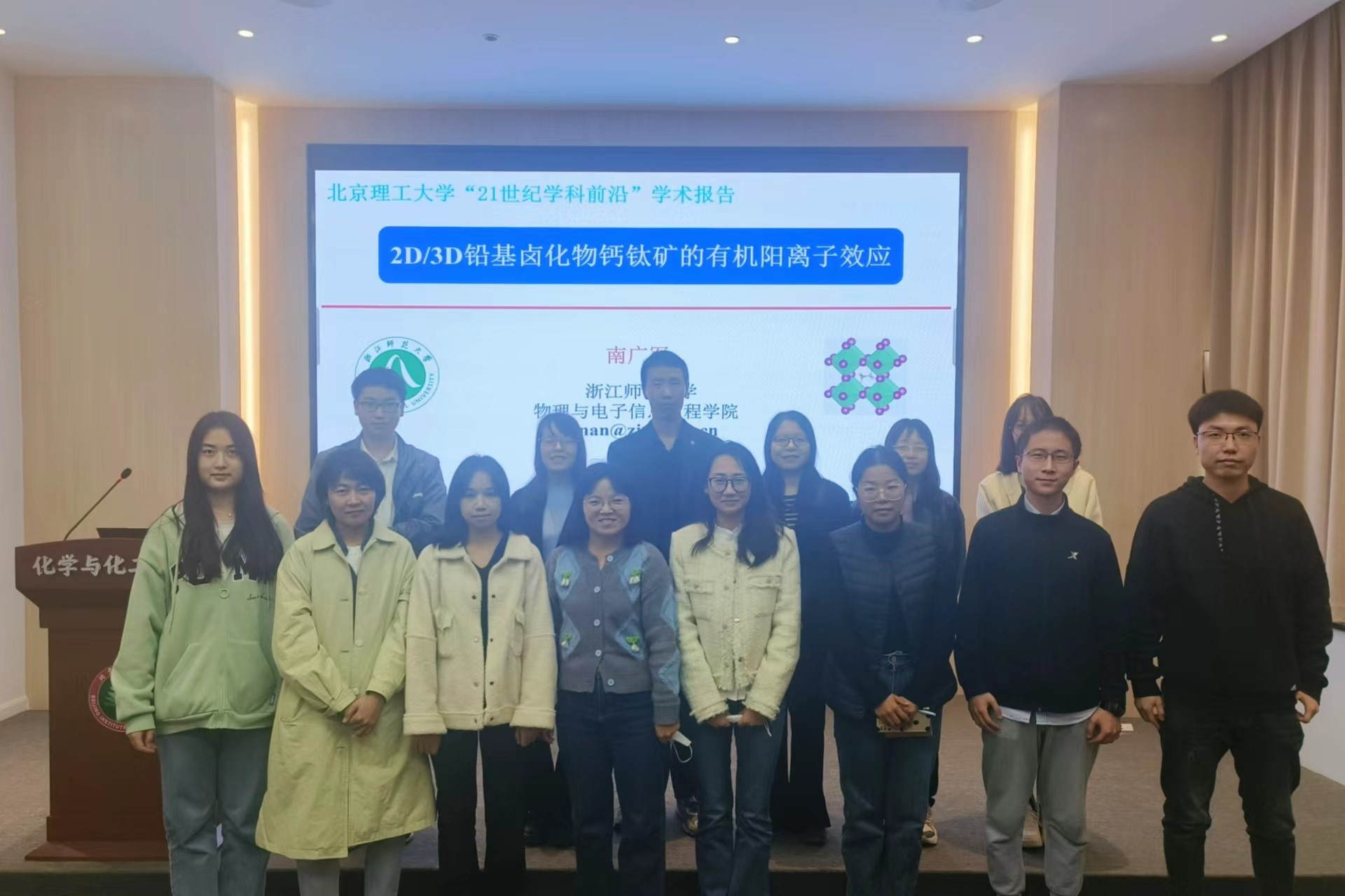 2023年10月31日下午14点,由动漫屋 研究生院主办,动漫屋 承办的“21世纪学科前沿”系列学术论坛于工业生态楼118会议室举行。浙江师范大学南广军教授到访我院并作题目为“2D/3D铅基卤化物钙钛矿的有机阳离子效应”的精彩学术报告。三十余名师生参加了本次讲座。