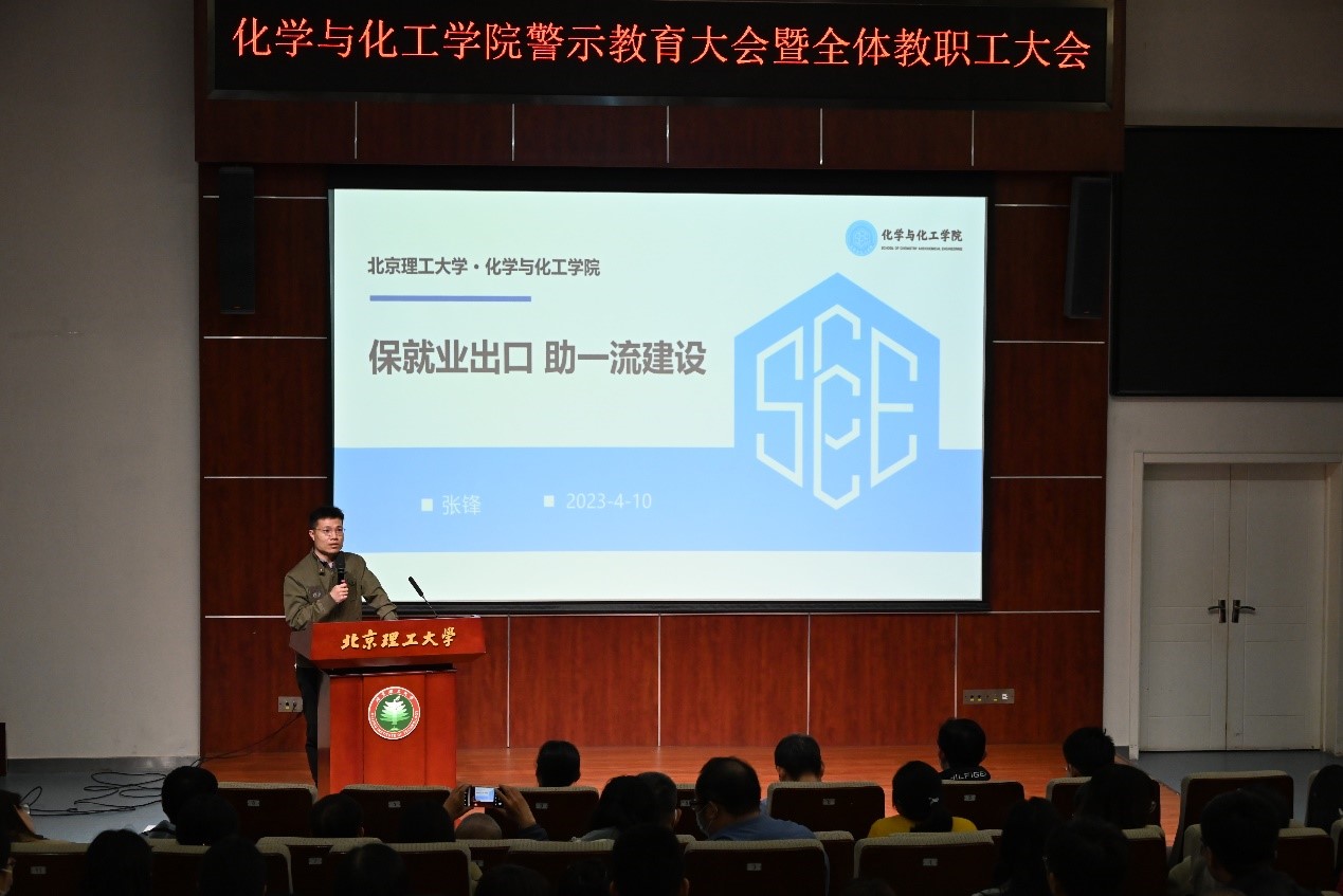 党委副书记、副院长张锋做了“保就业出口,助一流建设”的报告,通报了学院2022年的就业情况,2023年已开展的就业工作情况,并对学院为推进就业工作设立的专项奖励的评选事宜进行了宣贯。
